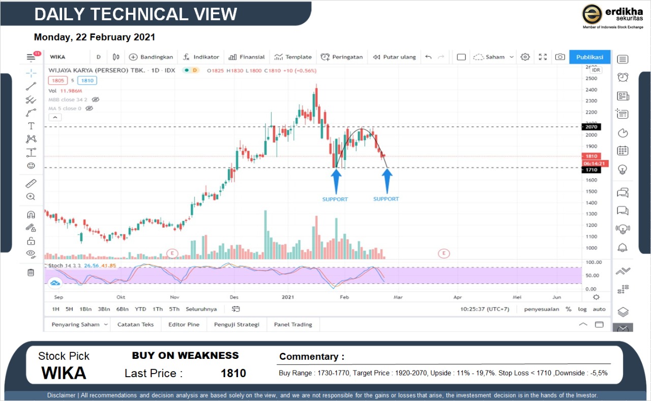 BUY ON WEAKNESS WIKA (1810). Buy Range : 1730-1770, Target Price : 1920-2070, Upside : 11% - 19,7%. Stop Loss < 1710 ,Downside : -5,5%... Read more