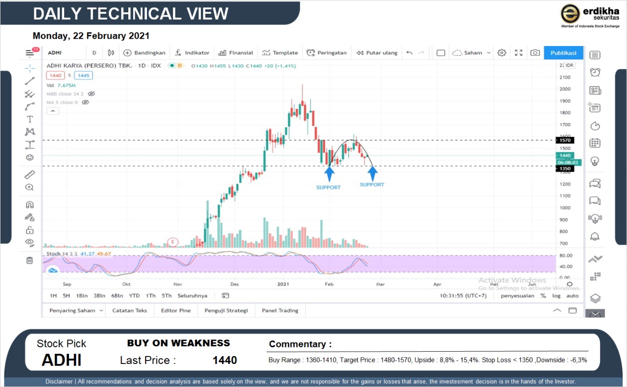 BUY ON WEAKNESS ADHI (1440). Buy Range : 1360-1410, Target Price : 1480-1570, Upside : 8,8% - 15,4%. Stop Loss < 1350 ,Downside : -6,3%... Read more