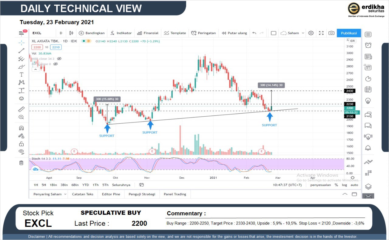 SPECULATIVE BUY EXCL (2200). Buy Range : 2200-2250, Target Price : 2330-2430, Upside : 5,9% - 10,5%. Stop Loss < 2120 ,Downside : -3,6%... Read more