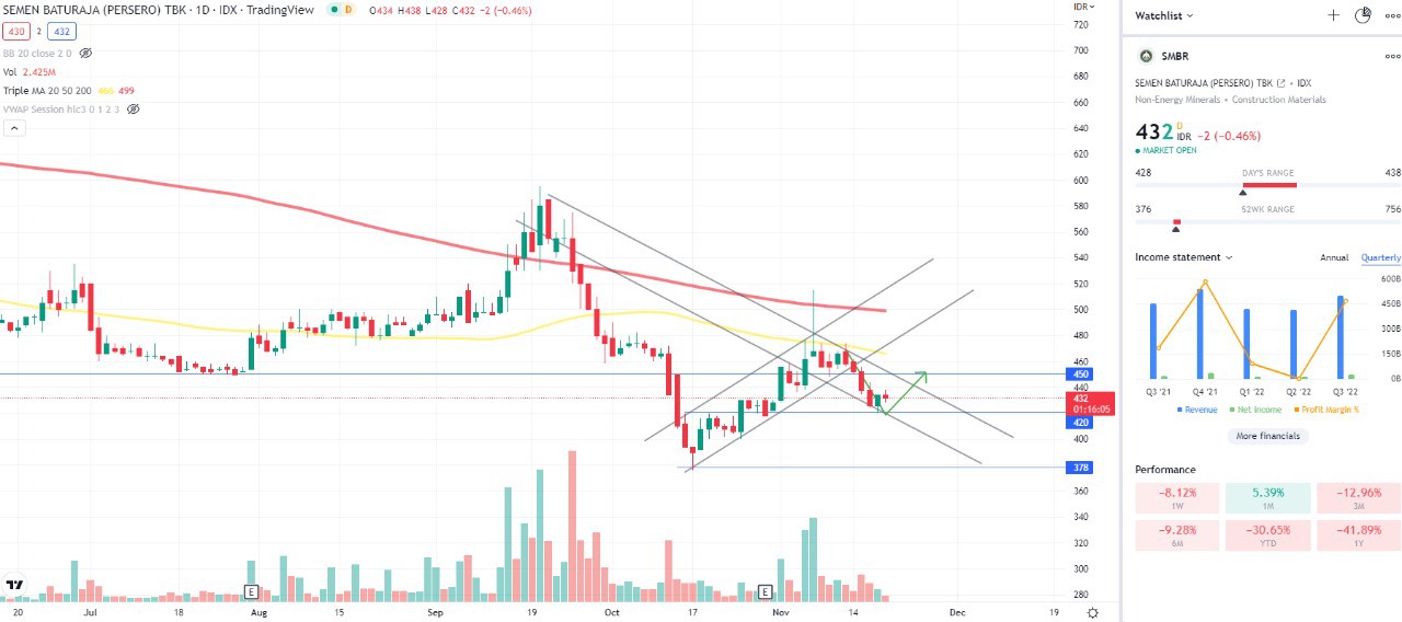Ada potensi rebound ke level 450 apabila kuat di atas support mayor 420.