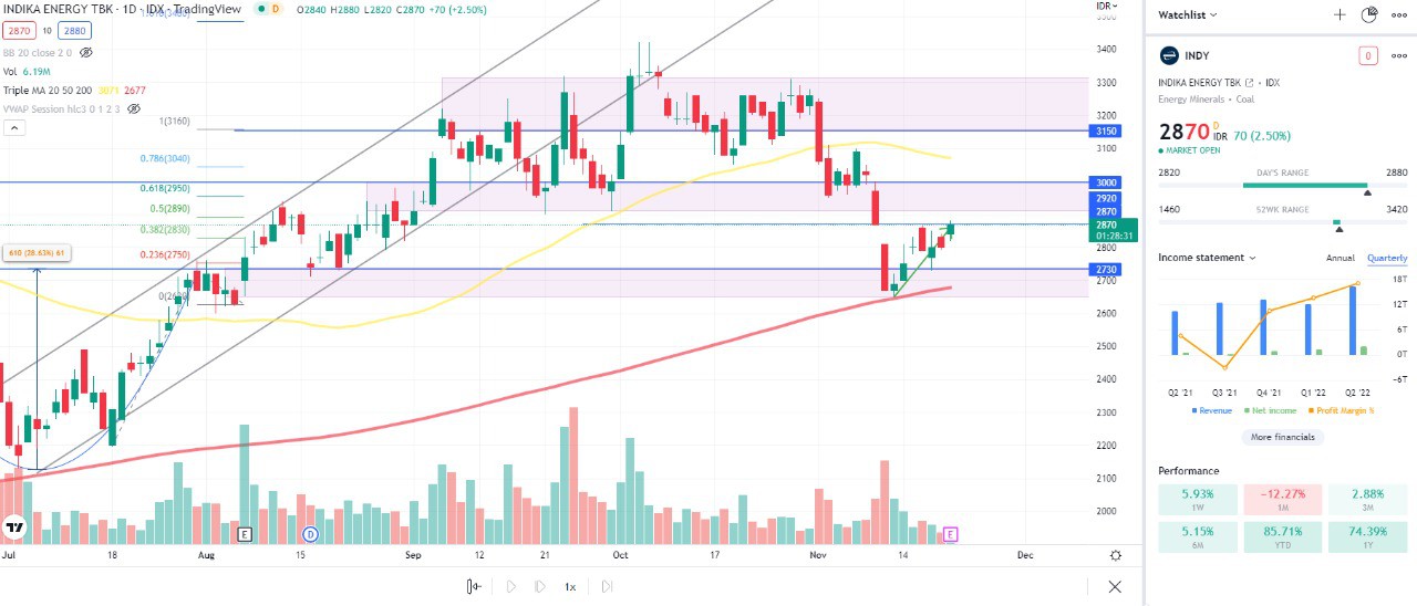 Buy on Weakness INDY dengan support di 2700, cutloss jika break di bawah 2650.