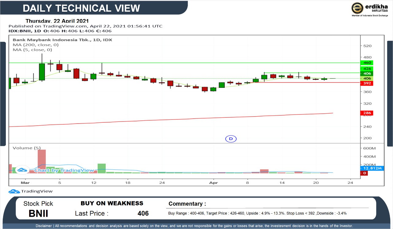 Target Price : 426-460, Upside : 4.9% - 13.3%.