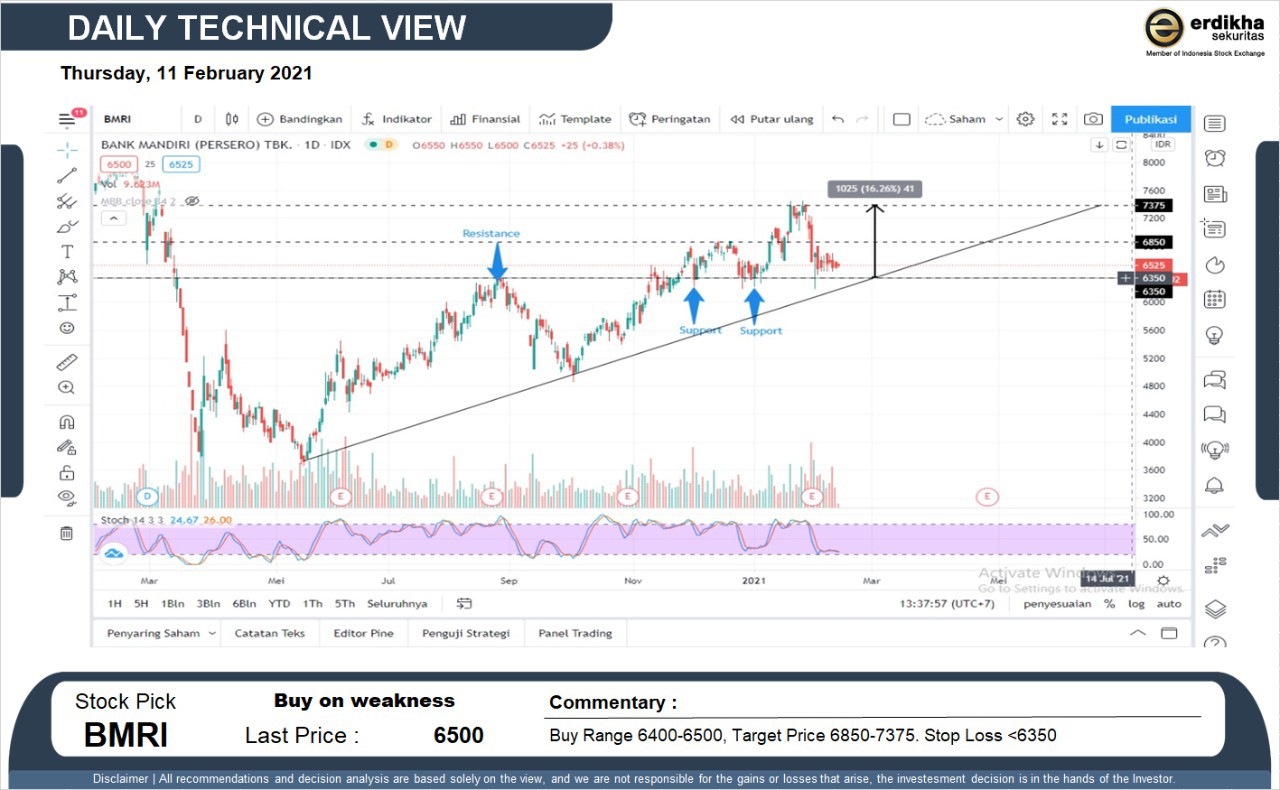 Buy on weakness BMRI (6500). Buy Range 6400-6500, Target Price 6850-7375. Stop Loss <6350.... Read more